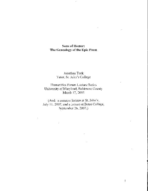 Sons Of Homer The Genealogy Of An Epic Poem St Johns