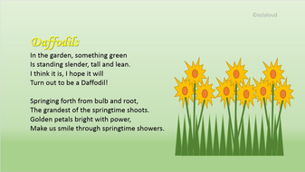 Browse through to read poems for daffodils. Poetry offers solace for the lonely and a positive perspective on being alone. In it the poet remembers that he once saw a beautiful scene a lake and the daffodils beside it.