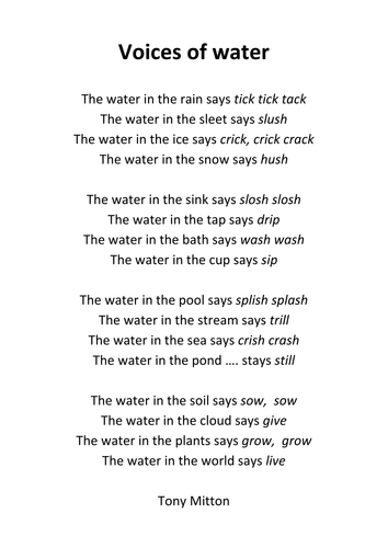 Voices Of Water Poem Teaching Resources